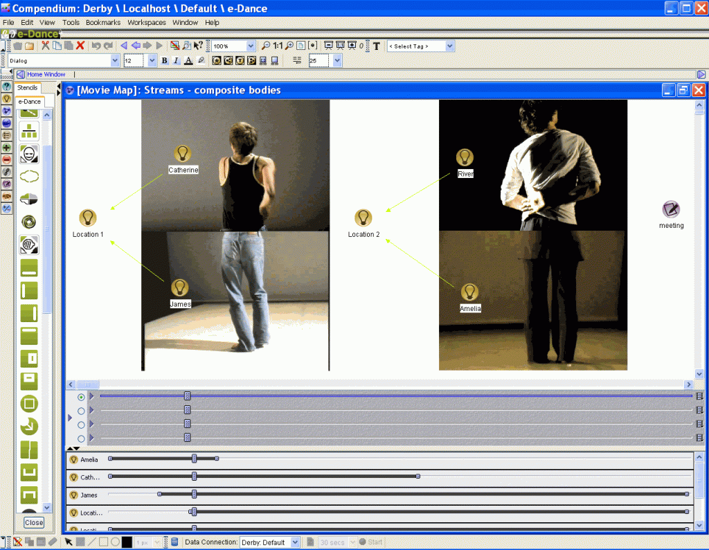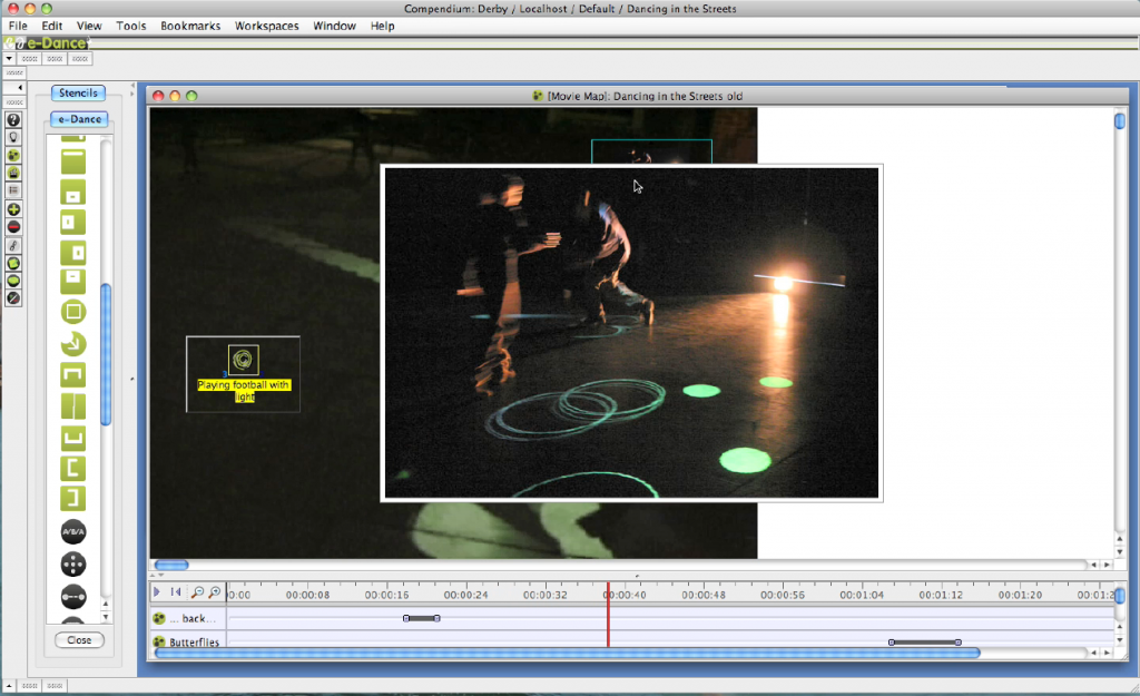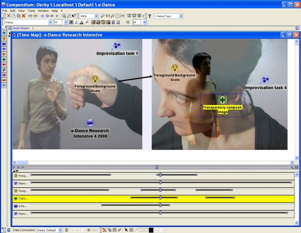 For this project the Compendium mapping tool was extended to support both the design of the choreography for a dance piece and mapping over video content for analysis of rehearsals and performances.